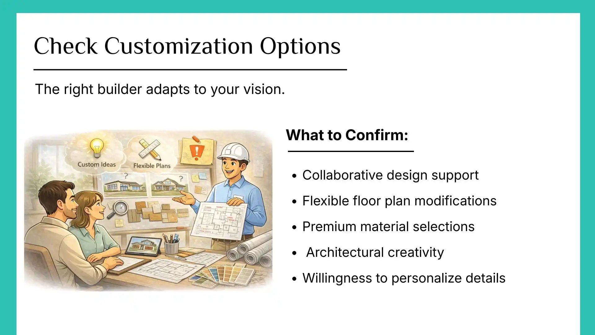 A builder may showcase beautiful photos, but if every home follows the same layout with minor cosmetic changes, customization may be limited.