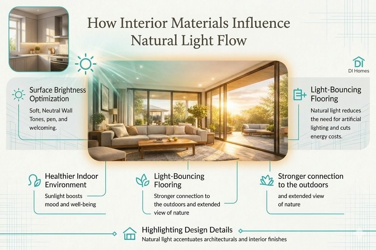 Materials and finishes inside the home influence how well daylight spreads through a room. When working with a custom home builder, these design choices are carefully planned to ensure surfaces enhance natural light rather than absorb it.