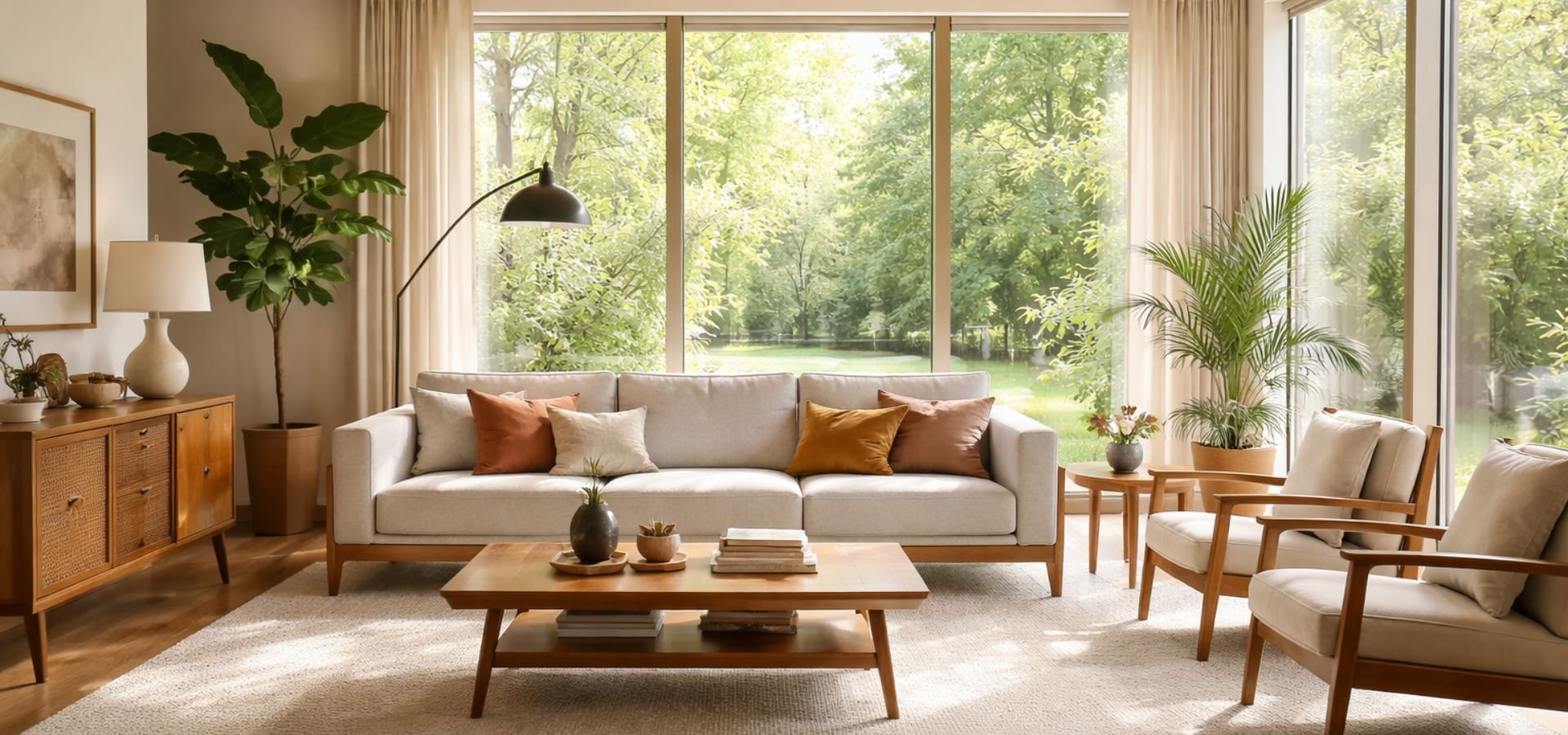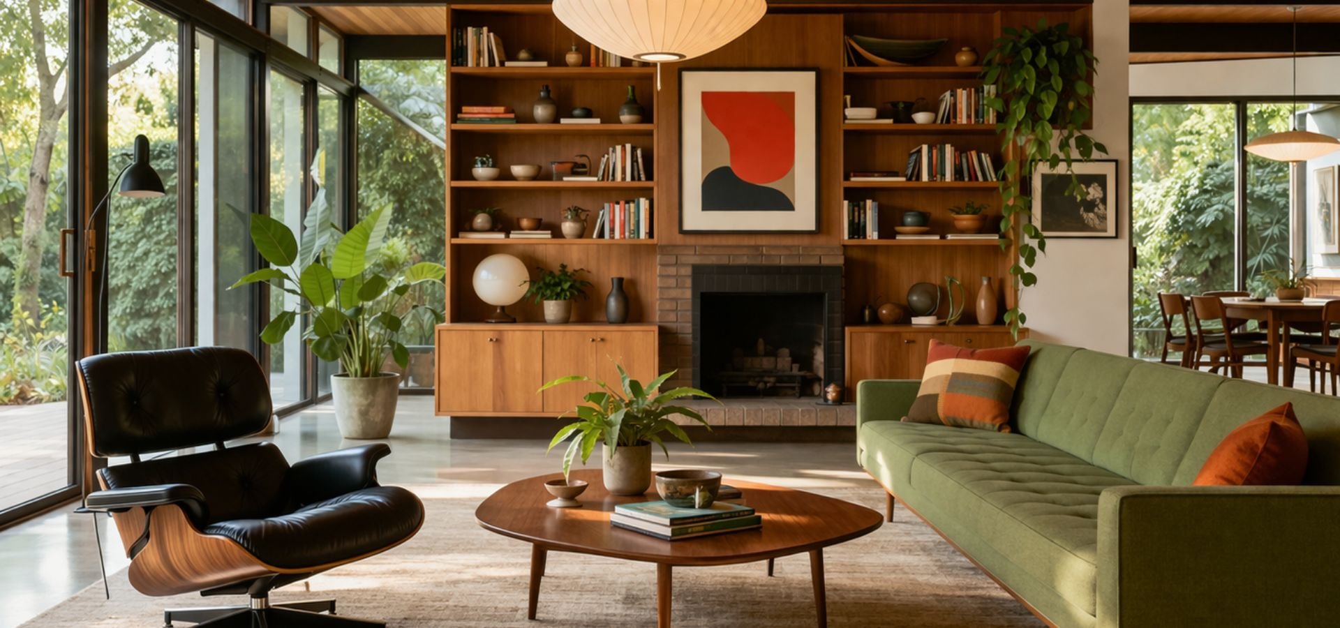 The living room is the heart of a mid-century modern house. It should feel open, usable, and comfortable.